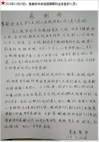 患者张华的感谢信-感谢信-患者心声-患者服务-重庆医科大学附属第三医院【官方网站】