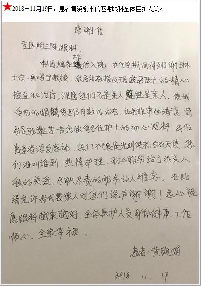 患者黄晓娟的感谢信-感谢信-患者心声-患者服务-重庆医科大学附属第三医院【官方网站】