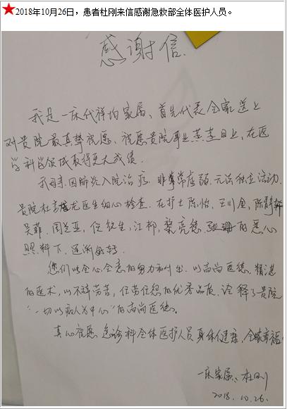 患者杜刚的感谢信