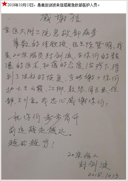 患者封剑波的感谢信-感谢信-患者心声-患者服务-重庆医科大学附属第三医院【官方网站】
