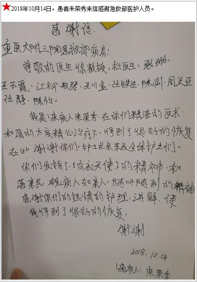 患者朱荣秀的感谢信-感谢信-患者心声-患者服务-重庆医科大学附属第三医院【官方网站】