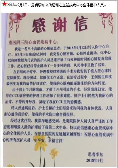 患者李东的感谢信-感谢信-患者心声-患者服务-重庆医科大学附属第三医院【官方网站】