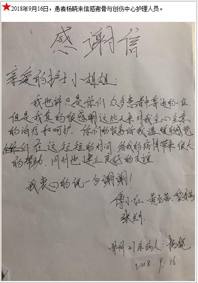 患者杨晓的感谢信