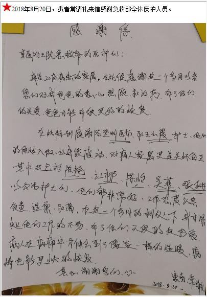 患者常请礼的感谢信-感谢信-患者心声-患者服务-重庆医科大学附属第三医院【官方网站】