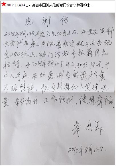 患者幸国美的感谢信-感谢信-患者心声-患者服务-重庆医科大学附属第三医院【官方网站】