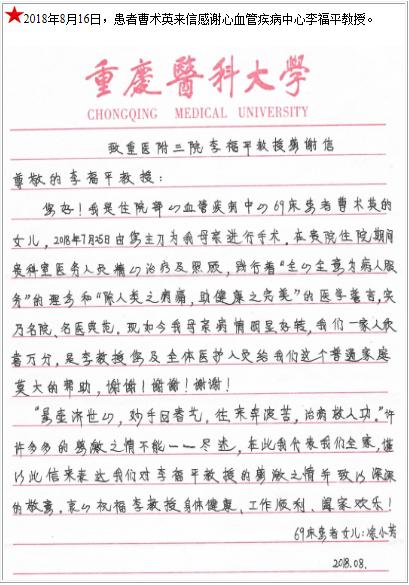 患者曹术英的感谢信-感谢信-患者心声-患者服务-重庆医科大学附属第三医院【官方网站】