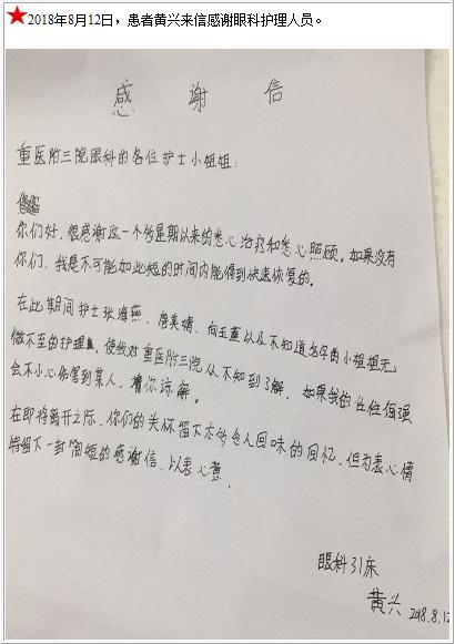 患者黄兴的感谢信-感谢信-患者心声-患者服务-重庆医科大学附属第三医院【官方网站】