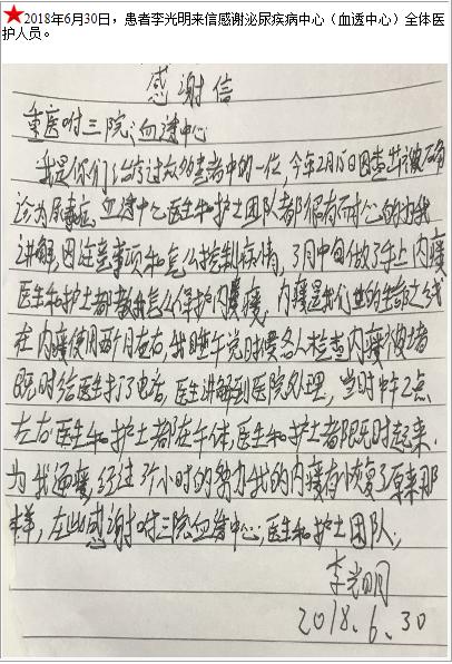 患者李光明的感谢信-感谢信-患者心声-患者服务-重庆医科大学附属第三医院【官方网站】