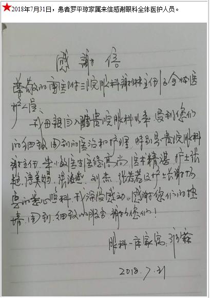 患者罗平琼家属的感谢信-感谢信-患者心声-患者服务-重庆医科大学附属第三医院【官方网站】