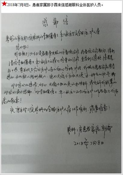 患者家属郭子霖的感谢信-感谢信-患者心声-患者服务-重庆医科大学附属第三医院【官方网站】