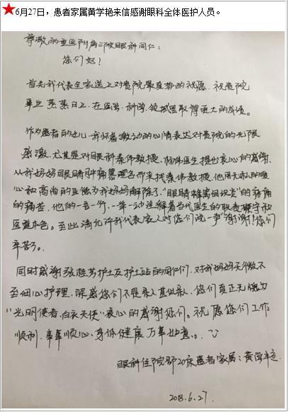 患者家属黄学艳的感谢信-感谢信-患者心声-患者服务-重庆医科大学附属第三医院【官方网站】