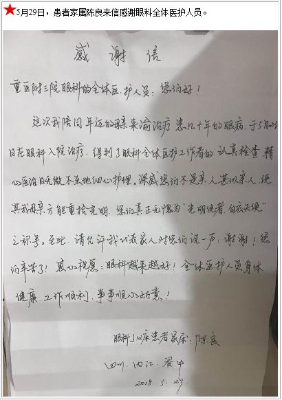 患者家属陈良的感谢信-感谢信-患者心声-患者服务-重庆医科大学附属第三医院【官方网站】
