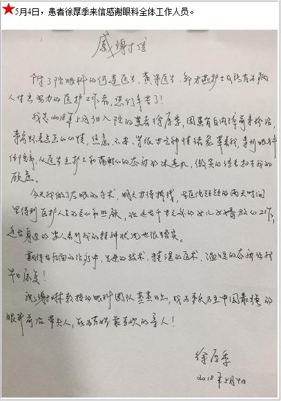 患者徐厚季的感谢信-感谢信-患者心声-患者服务-重庆医科大学附属第三医院【官方网站】