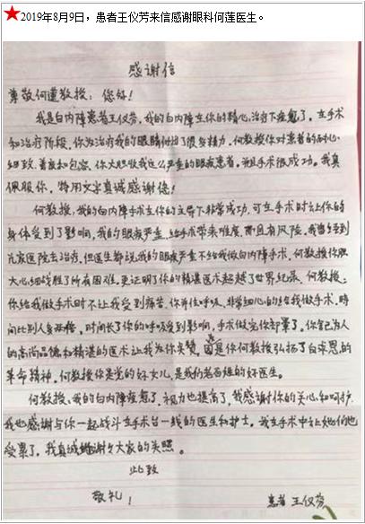 患者王仪芳的感谢信