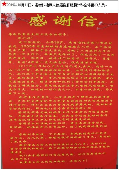患者张艳凤的感谢信-感谢信-患者心声-患者服务-重庆医科大学附属第三医院【官方网站】