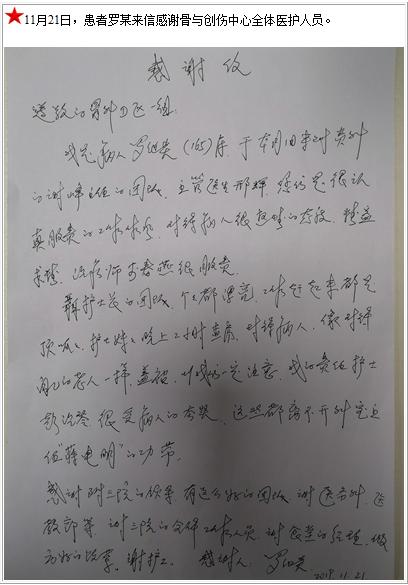 患者罗某的感谢信-感谢信-患者心声-患者服务-重庆医科大学附属第三医院【官方网站】