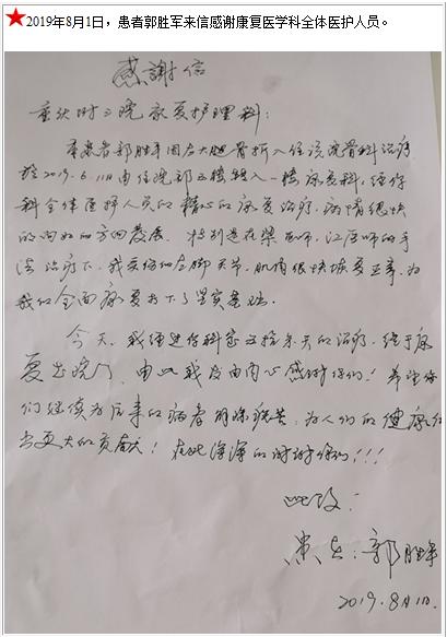 患者郭胜军的感谢信-感谢信-患者心声-患者服务-重庆医科大学附属第三医院【官方网站】