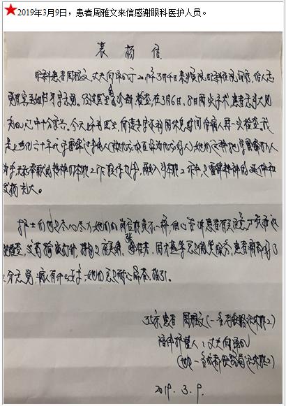 患者周雅文的感谢信