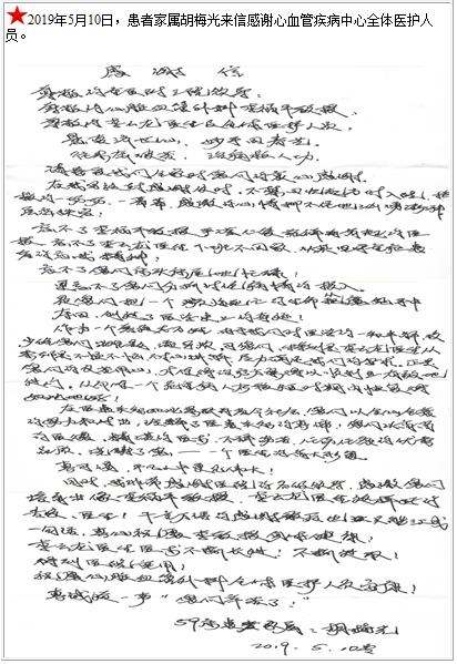 患者家属胡梅光的感谢信