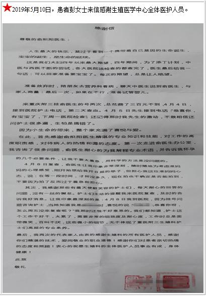 患者彭女士的感谢信-感谢信-患者心声-患者服务-重庆医科大学附属第三医院【官方网站】