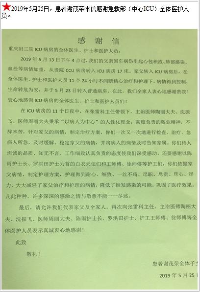 患者谢茂荣的感谢信-感谢信-患者心声-患者服务-重庆医科大学附属第三医院【官方网站】