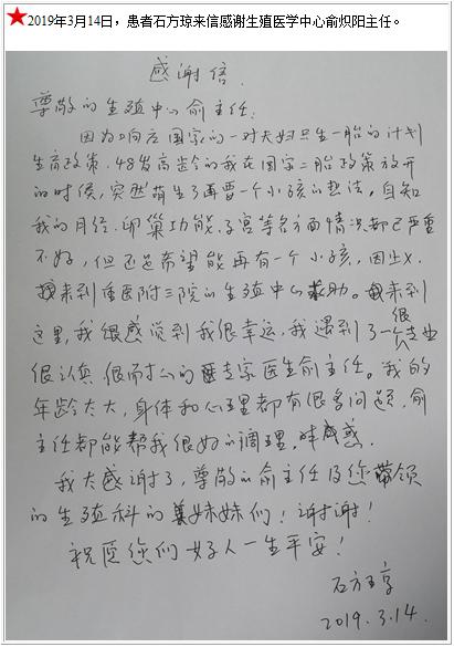 患者石方琼的感谢信-感谢信-患者心声-患者服务-重庆医科大学附属第三医院【官方网站】