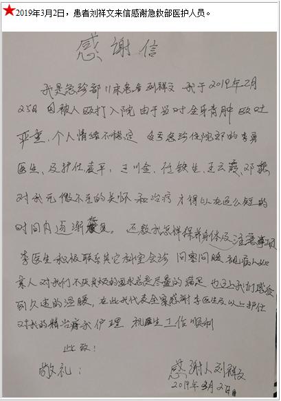 患者刘祥文的感谢信-感谢信-患者心声-患者服务-重庆医科大学附属第三医院【官方网站】