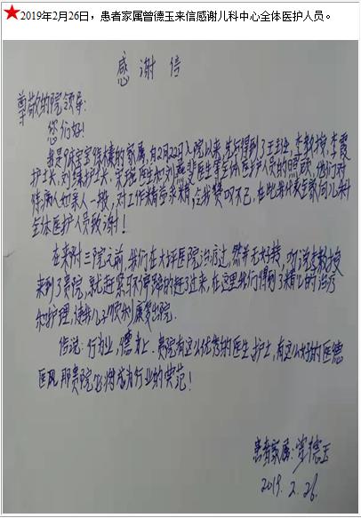 患者家属曾德玉的感谢信