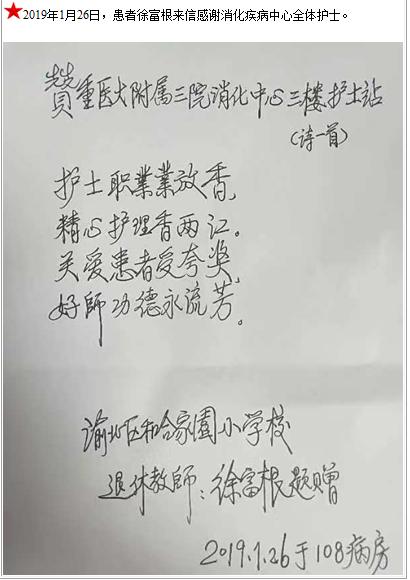 患者徐富根的感谢信-感谢信-患者心声-患者服务-重庆医科大学附属第三医院【官方网站】