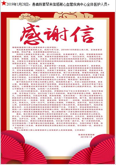 患者陈素琴的感谢信-感谢信-患者心声-患者服务-重庆医科大学附属第三医院【官方网站】