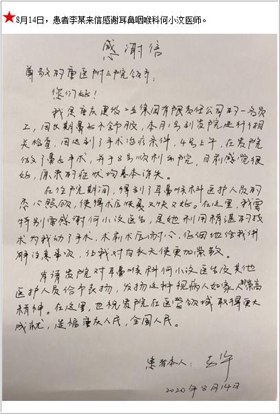 患者李某的感谢信-感谢信-患者心声-患者服务-重庆医科大学附属第三医院【官方网站】
