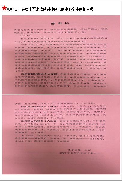 患者朱军的感谢信-感谢信-患者心声-患者服务-重庆医科大学附属第三医院【官方网站】