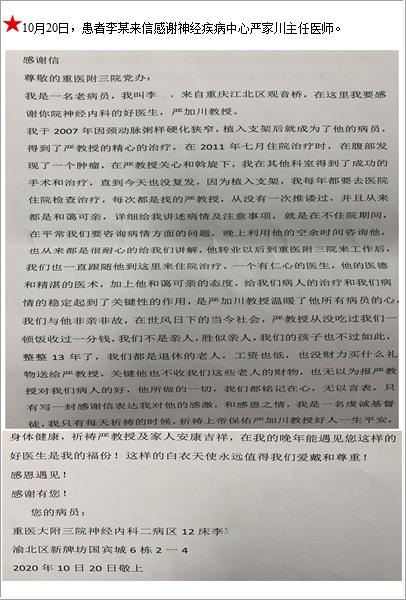 患者李某的感谢信-感谢信-患者心声-患者服务-重庆医科大学附属第三医院【官方网站】