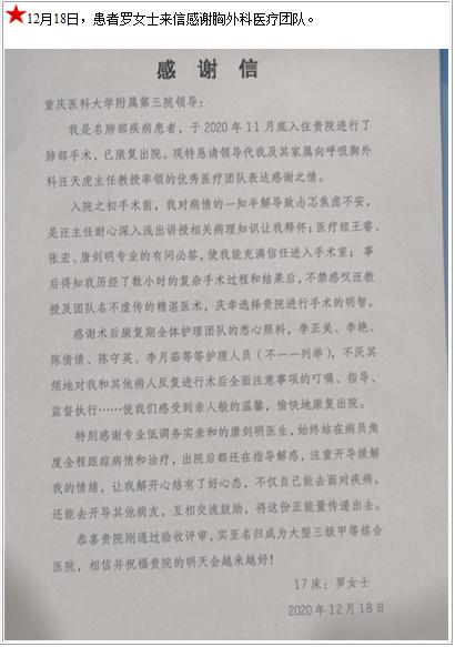 患者罗女士的感谢信-感谢信-患者心声-患者服务-重庆医科大学附属第三医院【官方网站】