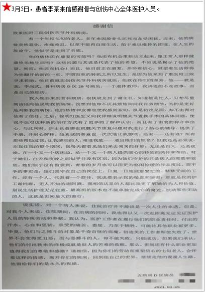 患者李某的感谢信-感谢信-患者心声-患者服务-重庆医科大学附属第三医院【官方网站】