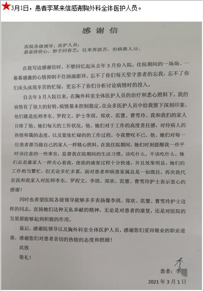患者李某的感谢信-感谢信-患者心声-患者服务-重庆医科大学附属第三医院【官方网站】