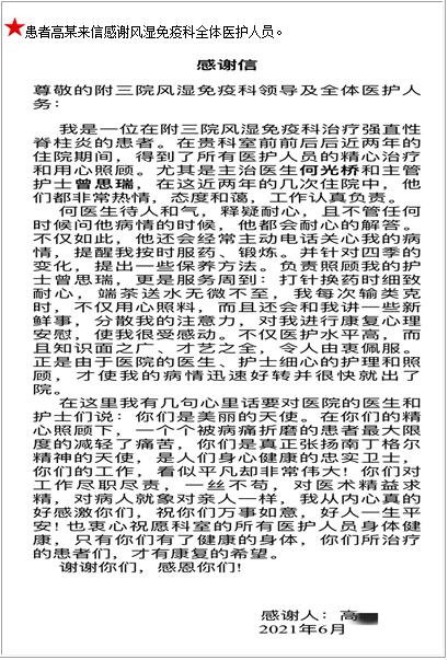 患者高某的感谢信-感谢信-患者心声-患者服务-重庆医科大学附属第三医院【官方网站】
