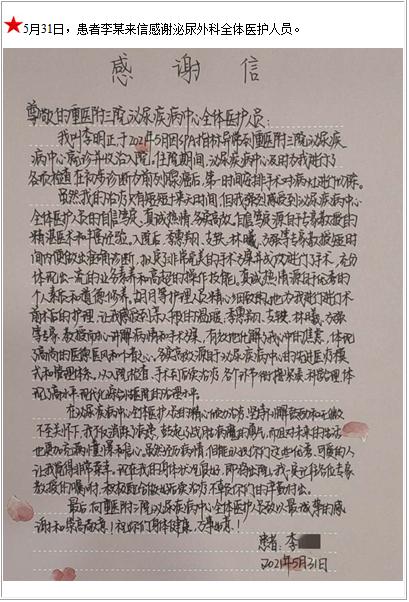 患者李某的感谢信-感谢信-患者心声-患者服务-重庆医科大学附属第三医院【官方网站】