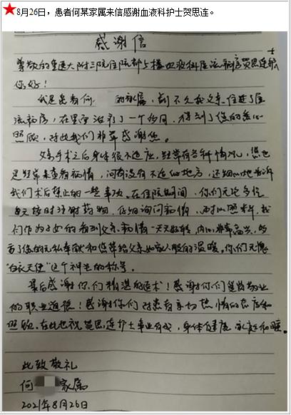 患者何某家属的感谢信-感谢信-患者心声-患者服务-重庆医科大学附属第三医院【官方网站】