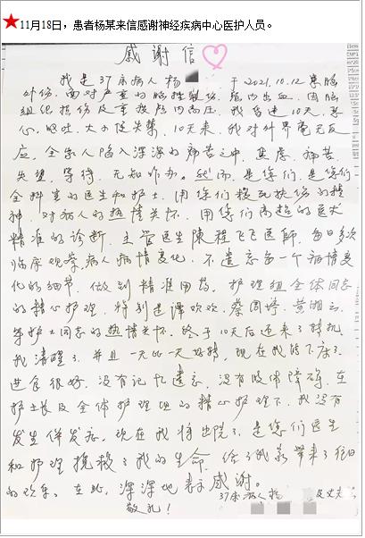 患者杨某的感谢信
