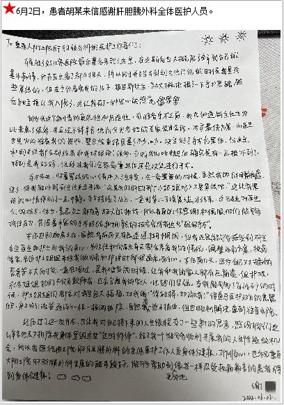 患者胡某的感谢信-感谢信-患者心声-患者服务-重庆医科大学附属第三医院【官方网站】