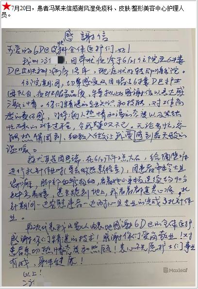患者冯某的感谢信