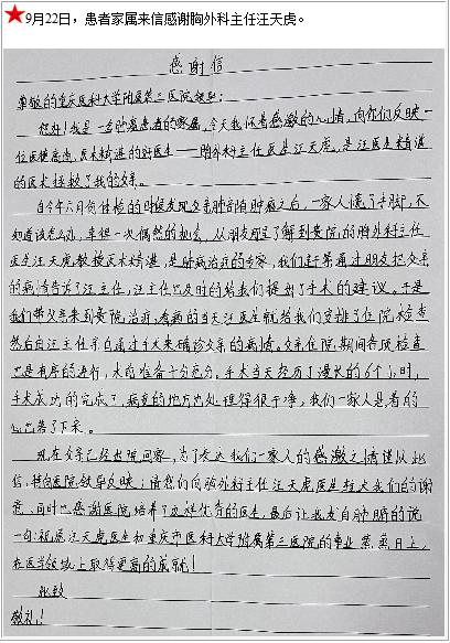 患者家属的感谢信-感谢信-患者心声-患者服务-重庆医科大学附属第三医院【官方网站】