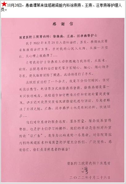 患者谭某的感谢信-感谢信-患者心声-患者服务-重庆医科大学附属第三医院【官方网站】
