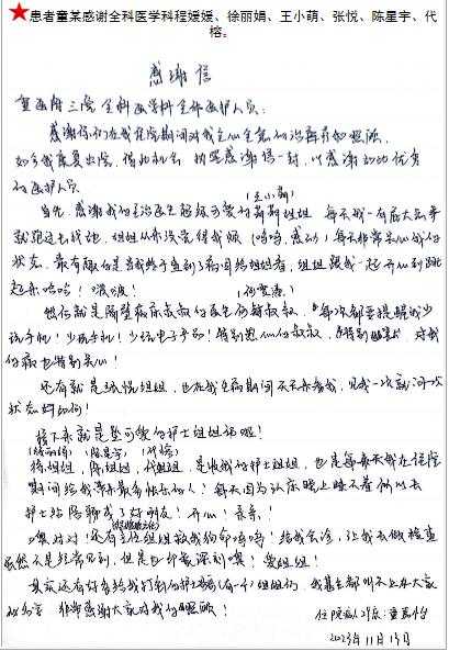 患者童某的感谢信-感谢信-患者心声-患者服务-重庆医科大学附属第三医院【官方网站】