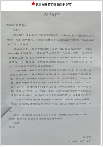 患者周某的感谢信-感谢信-患者心声-患者服务-重庆医科大学附属第三医院【官方网站】