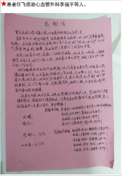 患者任某的感谢信。-感谢信-患者心声-患者服务-重庆医科大学附属第三医院【官方网站】