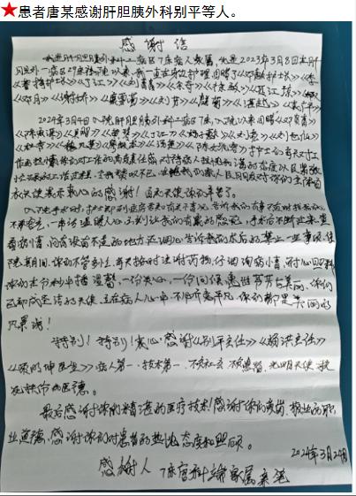 患者唐某的感谢信。-感谢信-患者心声-患者服务-重庆医科大学附属第三医院【官方网站】