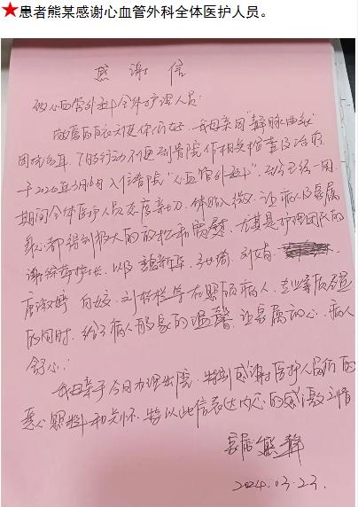 患者熊某的感谢信。-感谢信-患者心声-患者服务-重庆医科大学附属第三医院【官方网站】