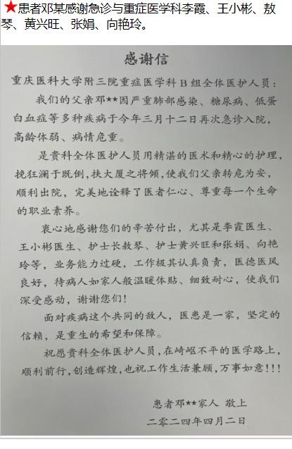 患者邓某的感谢信。-感谢信-患者心声-患者服务-重庆医科大学附属第三医院【官方网站】